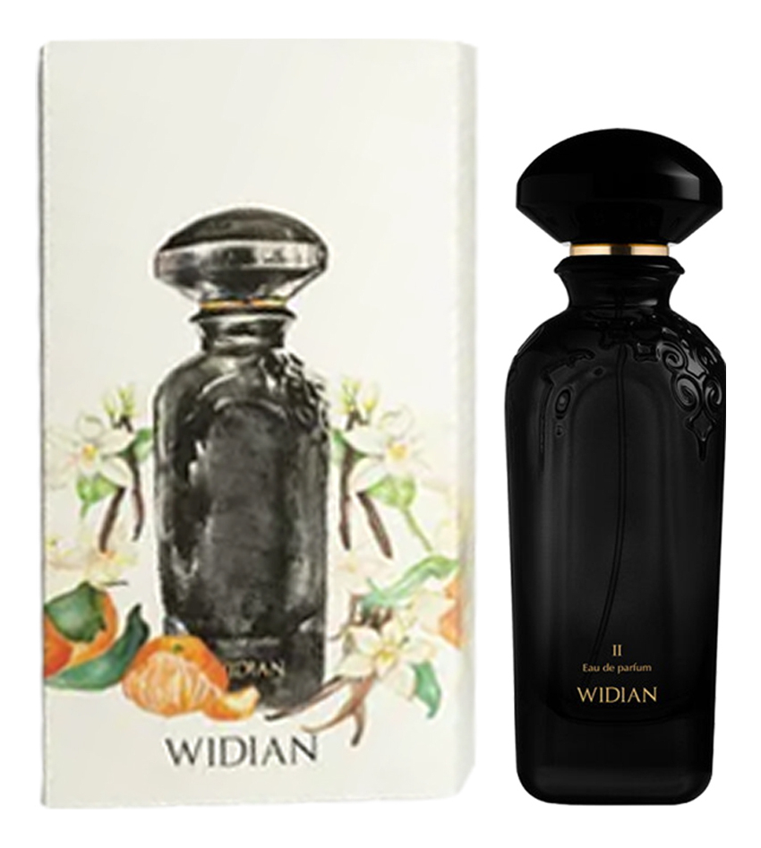 Верхние ноты Widian Black II представлены сочным апельсином и дымком индийского чая, создающими яркий и запоминающийся аккорд. В сердце аромата расцветают изысканные ноты ириса, розы и сливы, придающие композиции нежность и женственность. База аромата великолепно дополняет композицию благородством ветивера и теплотой белого мускуса.